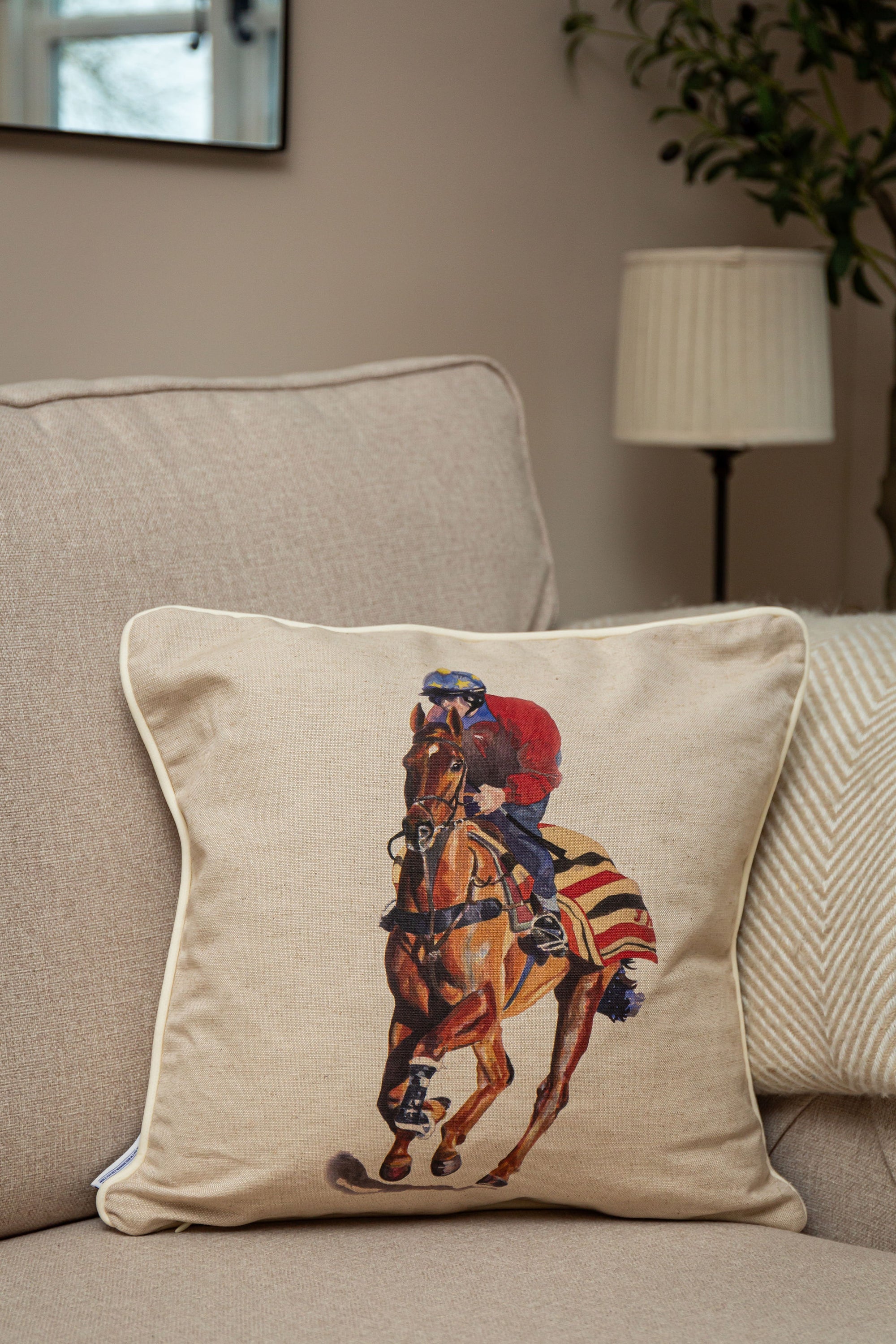 Isabel Scott x Munnings "Horses with Jockeys Up at Newmarket" Cushion